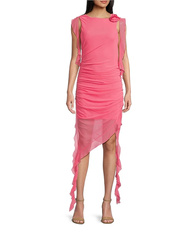 I.N. San Francisco Cowl Neck Cap Sleeve Front Slit Midi Dress