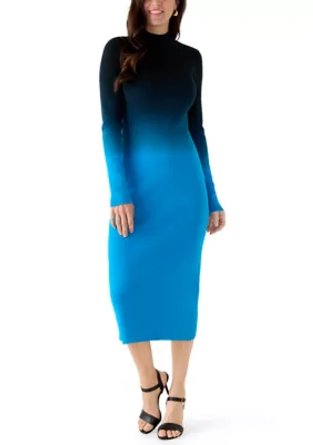 Women's Long Sleeve Dip Dye Ribbed Midi Dress