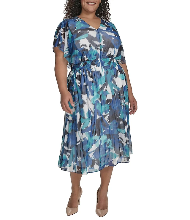 The Good Journey Women's Flutter-Sleeve Tie-Back Midi Dress