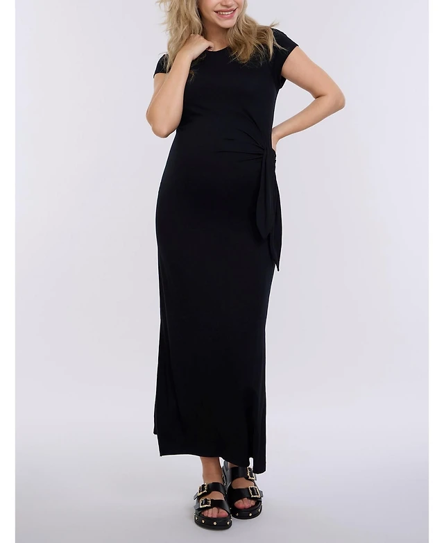 Motherhood Maternity Crew Neck Short Sleeve Side Tie Midi Dress