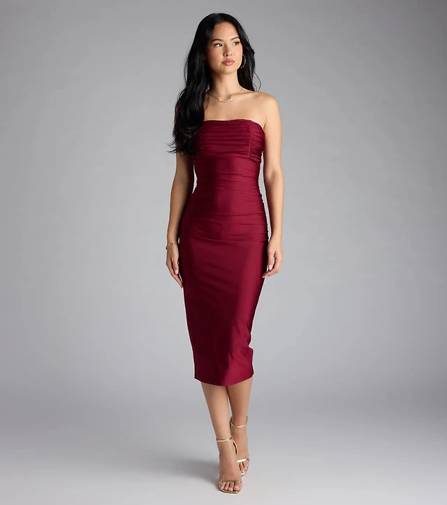 Velvet Bloom Flocked Floral Strapless Midi Dress