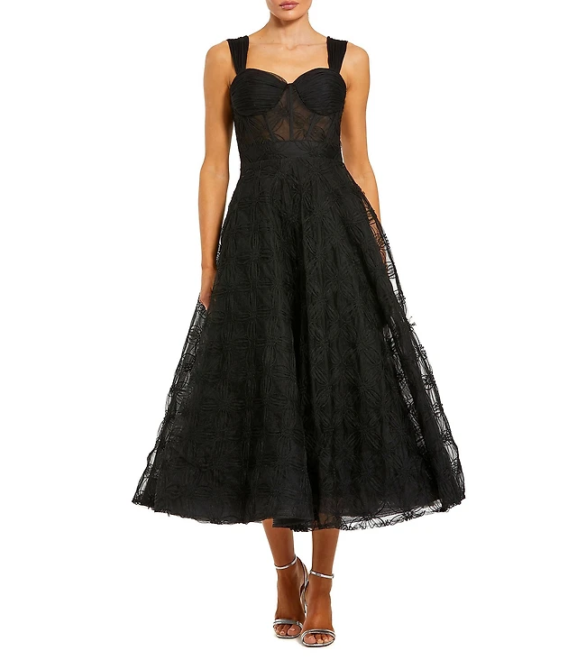 Mac Duggal Tulle Sweetheart Neck Midi Dress