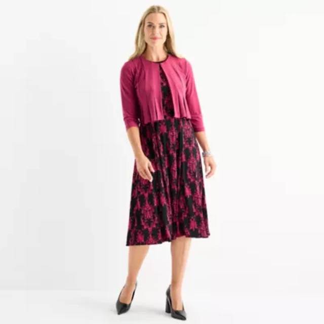 Msk Petite Printed Belted Short-Sleeve Midi Shirtdress