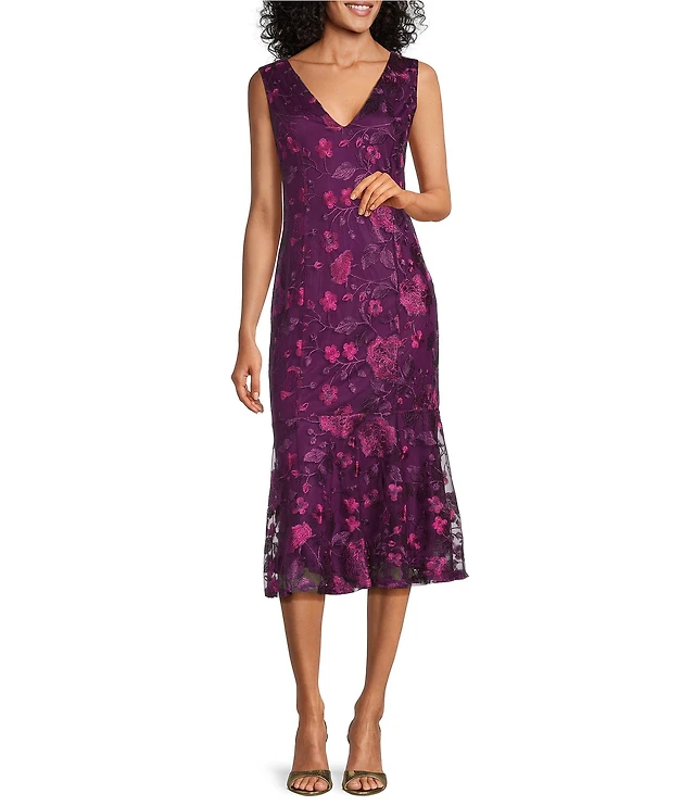 London Times Women's Sleeveless Floral Printed Midi Dress