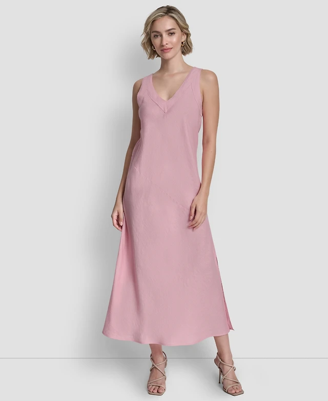 Dkny Women's Linen Panelled V-Neck Midi Dress