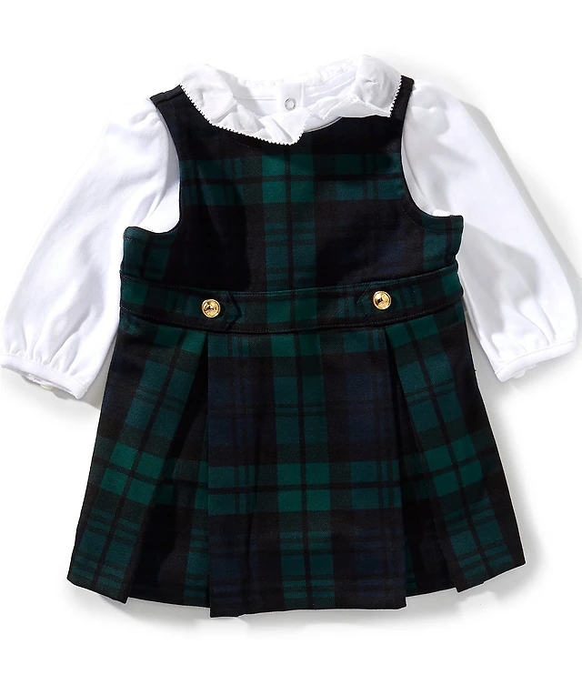 Ralph Lauren Baby Girls Sleeveless Plaid Ponte Jumper Dress & Puffed-Sleeve Interlock Bodysuit Set