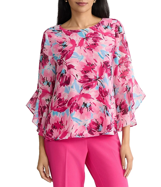 Kasper Floral Print 3/4 Ruffle Sleeve Blouse