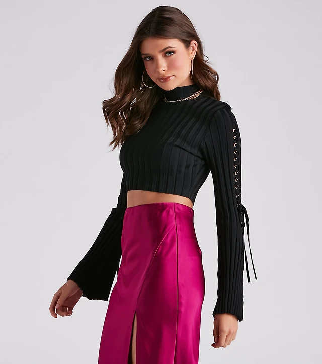 Such A Bell Sleeve Lace-Up Sweater