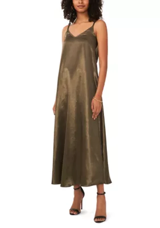 Tea Length Stretch Challis Lace-Up Slip Dress