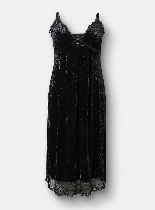 Ann Taylor Petite Lace Trim Satin Slip Midi Dress Black Women's