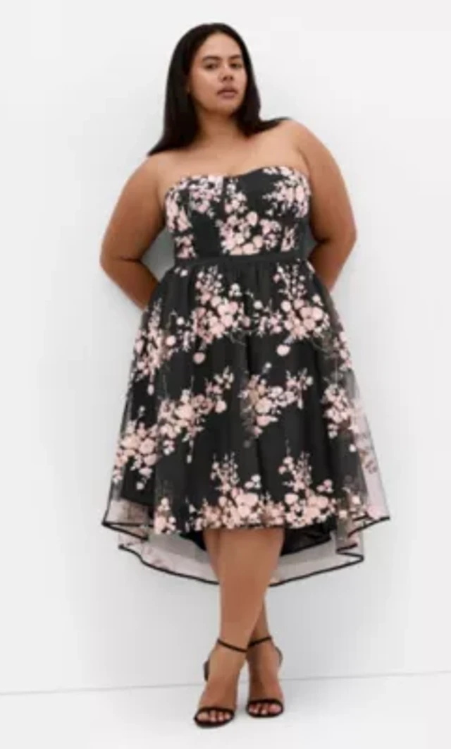 Rhea Mesh Strapless A-Line Dress With Scarf