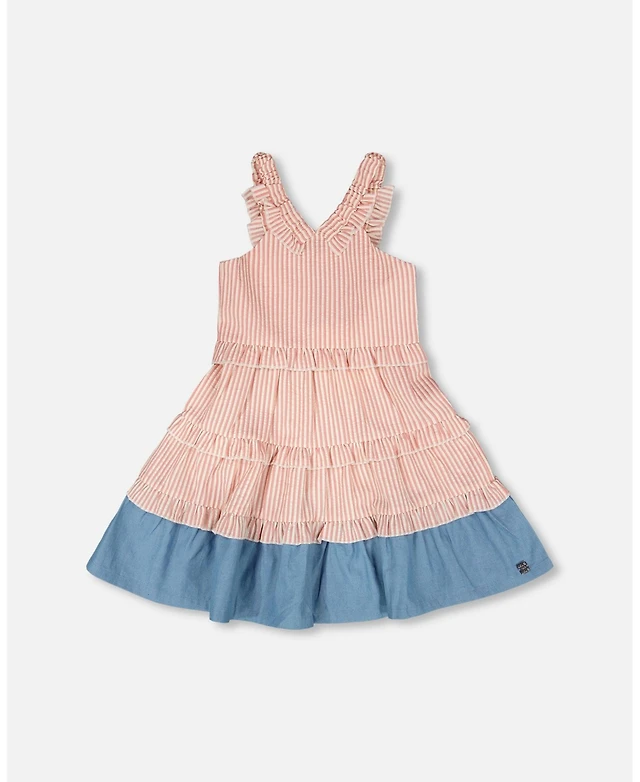 Steve Madden Prairie Dreams Chambray V-Neck Short Flutter Sleeve Tier Mini Dress
