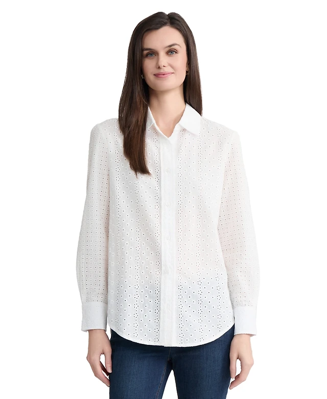 Nautica Women's Cotton Dobby Plaid Camp Shirt