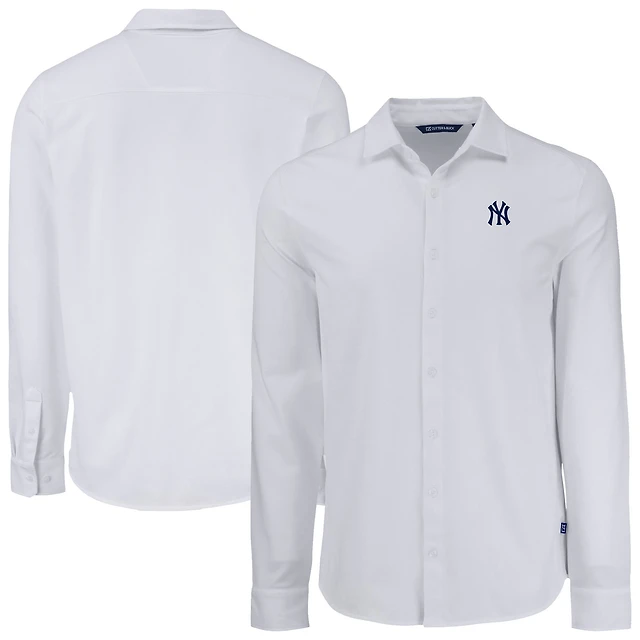 Men's Cutter & Buck White Kansas City Chiefs Knitted Advantage Tri-Blend Eco Soft Pique Long Sleeve Button-Up Shirt