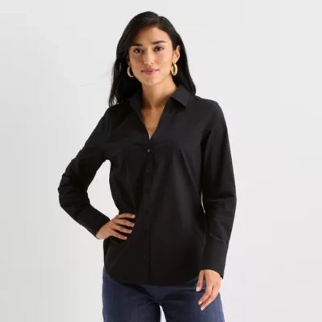 St. John's Bay Poplin Mens Long Sleeve Slim Fit Button-Down Shirt