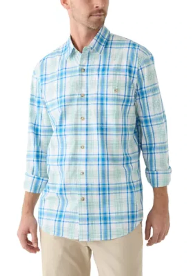 Slim Fit Ombre Plaid Woven Button Up Shirt