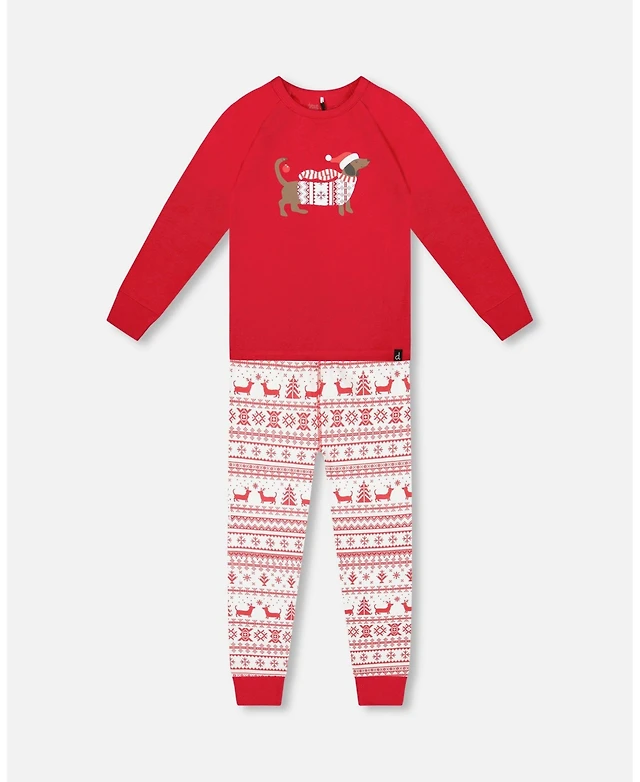 Deux par Deux Kids Unisex Cotton Two-Piece Pajama Set Red and White Fairisle