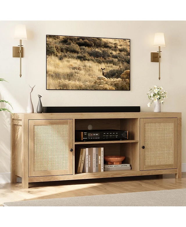 Streamdale Furniture Rattan Tv Stand for TVs, Mid Century Boho Entertainment Center
