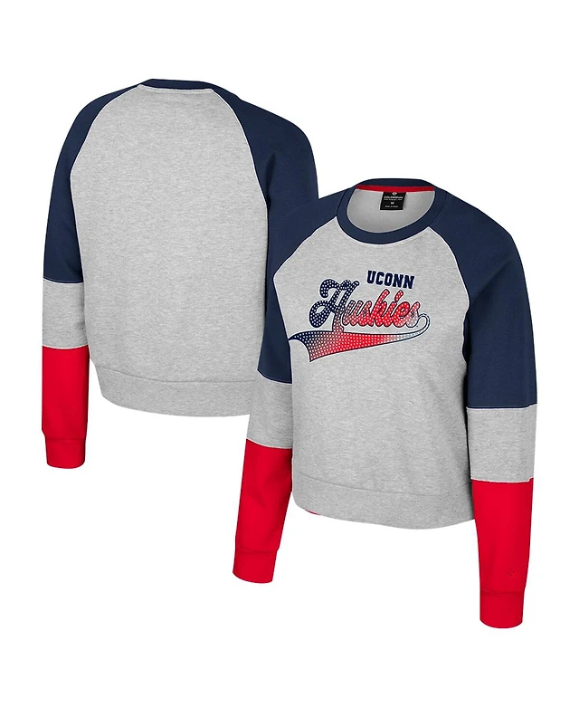 Colosseum Women's Heather Gray UConn Huskies Katinka Rhinestone Scoop Neck Pullover Sweatshirt