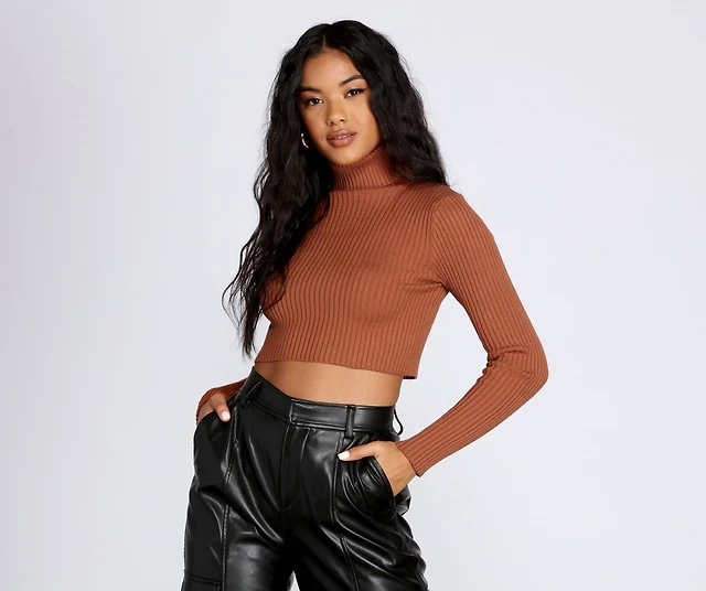 Ribbed Knit Turtleneck Top