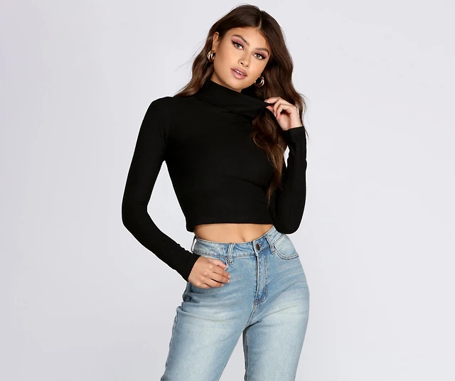 A Loves A Stretch Knit Turtleneck Long Sleeve Tee