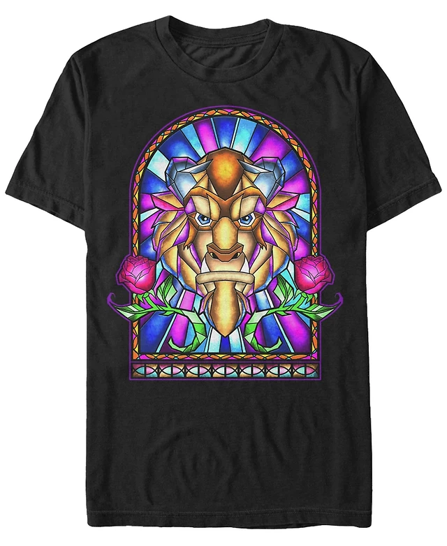Disney Men's Beauty and the Beast Stained Glass Window, Short Sleeve T-Shirt