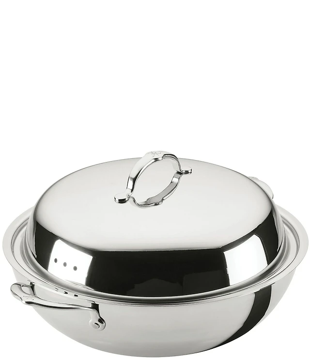 Le Creuset Classic Stainless Steel Round Saute Pan with Lid, 6 Qt.