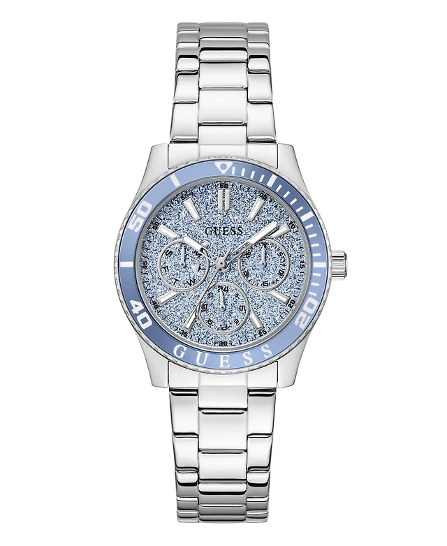 Dkny Women's Silver Crystal Covered Dial Crystal Bezel Stainless Steel Bracelet Multifunctional Watch, 36mm
