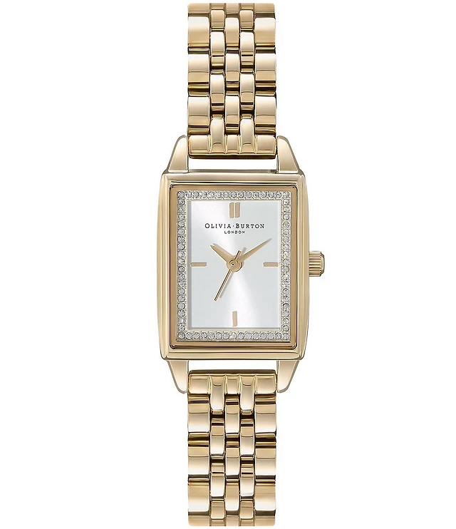 Olivia Burton Rectangle Quartz Analog White Dial Gold Stainless Steel Bracelet Watch