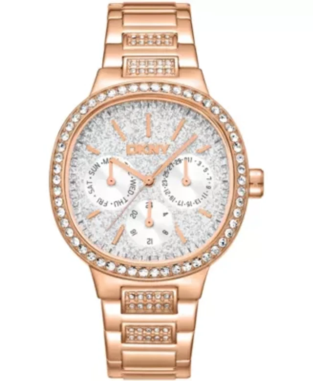 DKNY Women's Rose Gold Crystal Accented Dial Rose-Gold Tone Stainless Steel Open Link Bracelet Watch 24mm 50M