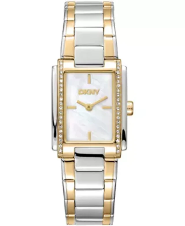 DKNY Women's Rose Gold Dial Crystal Dial Markers Crystal Bezel Two-Tone Red Gold Stainless Steel Bracelet Watch 30mm 50M