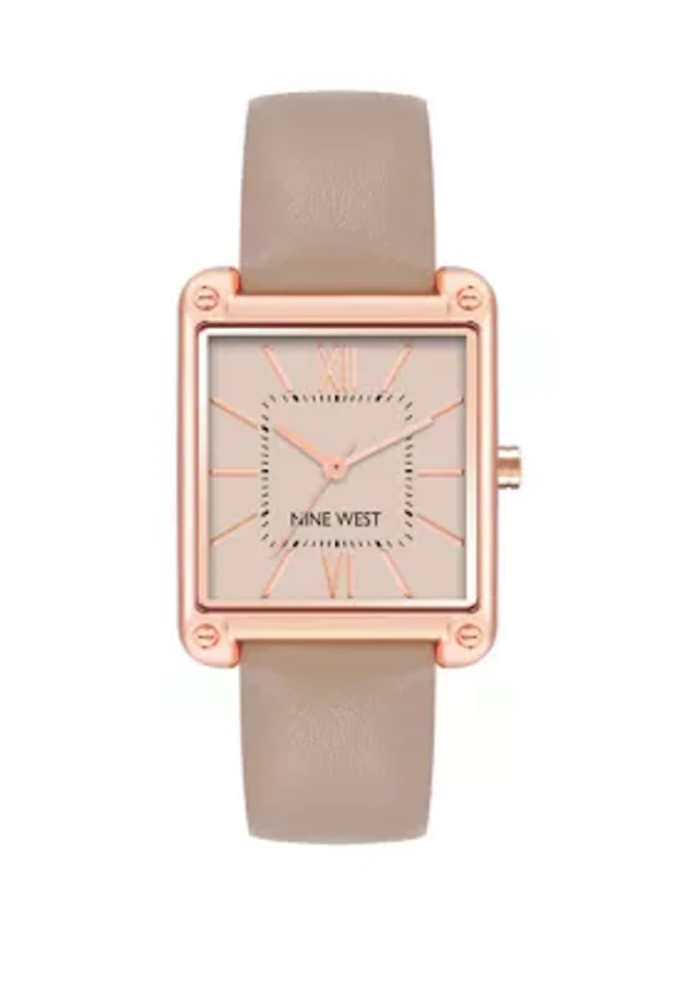 Women's 29 Millimeter Rectangular Taupe Faux Leather Band Watch