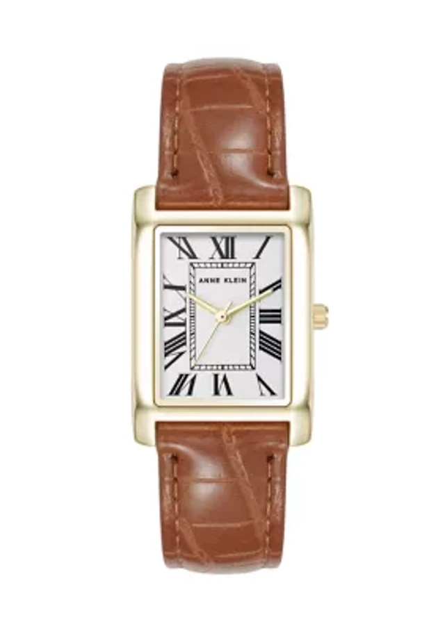 Women's Quartz Rectangular Gold Tone Faux Croc Watch