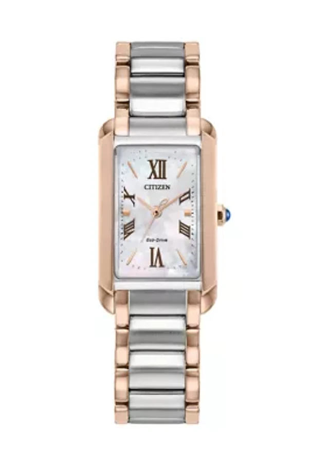 Ladies' Drive from Citizen Eco-Drive® LTR Rose-Tone Mesh Watch with Silver-Tone Dial (Model: Fe6083-72A)