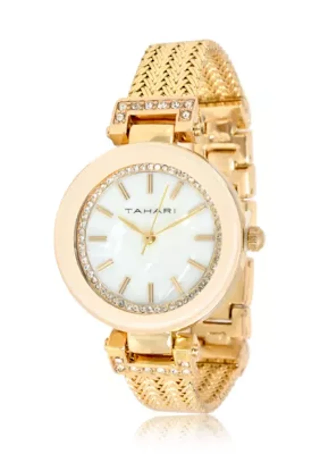 Tahari Adult Womens Analog Watch w Gold Case and Bracelet Model# TAH5752