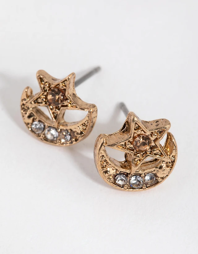 FULL TILT 7 Pack Moon Star Rings - GOLD