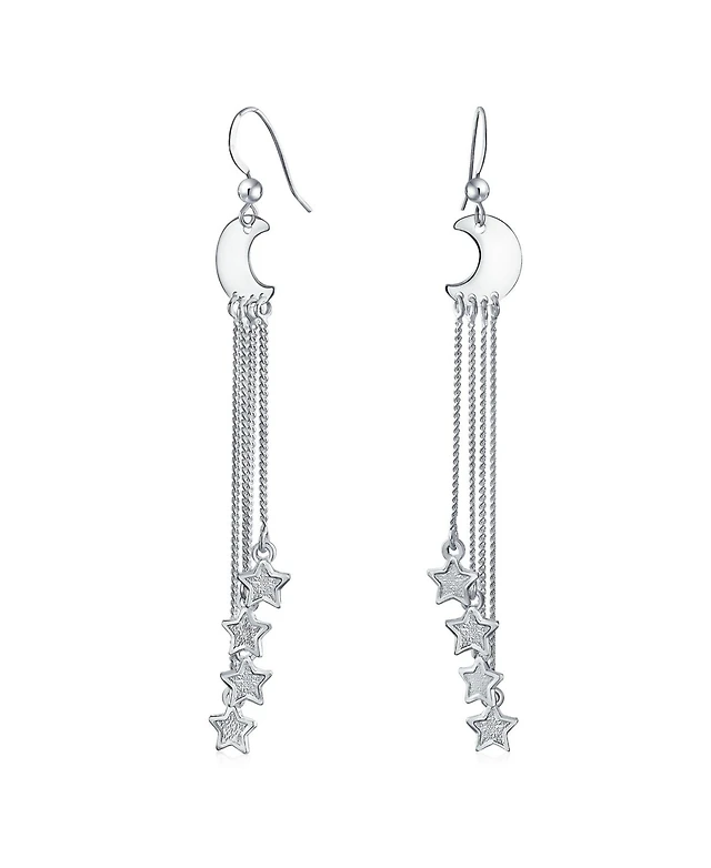 Lab-Created White Sapphire Crescent Moon and Star Mismatch Stud Earrings in Sterling Silver
