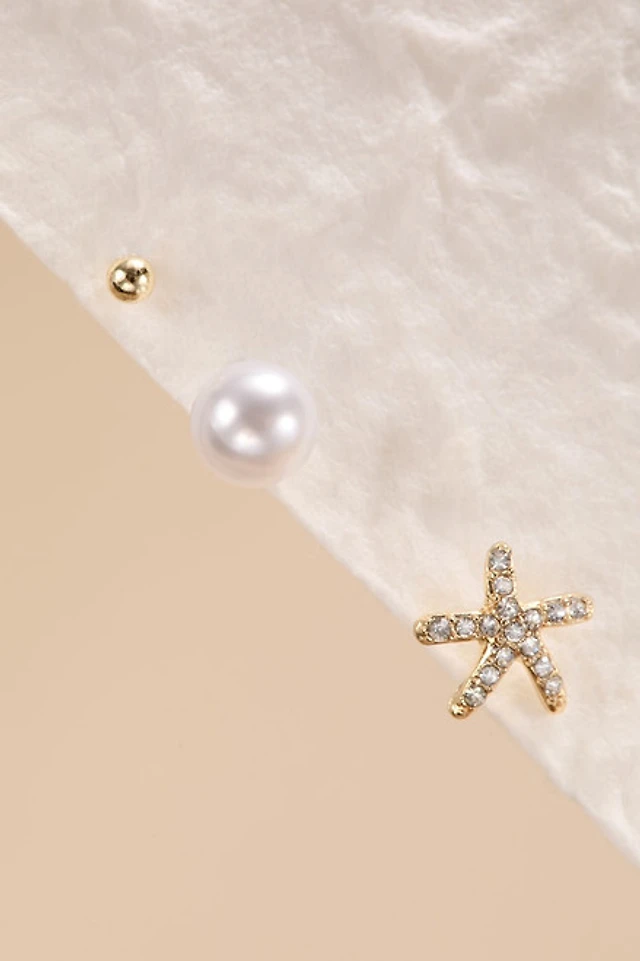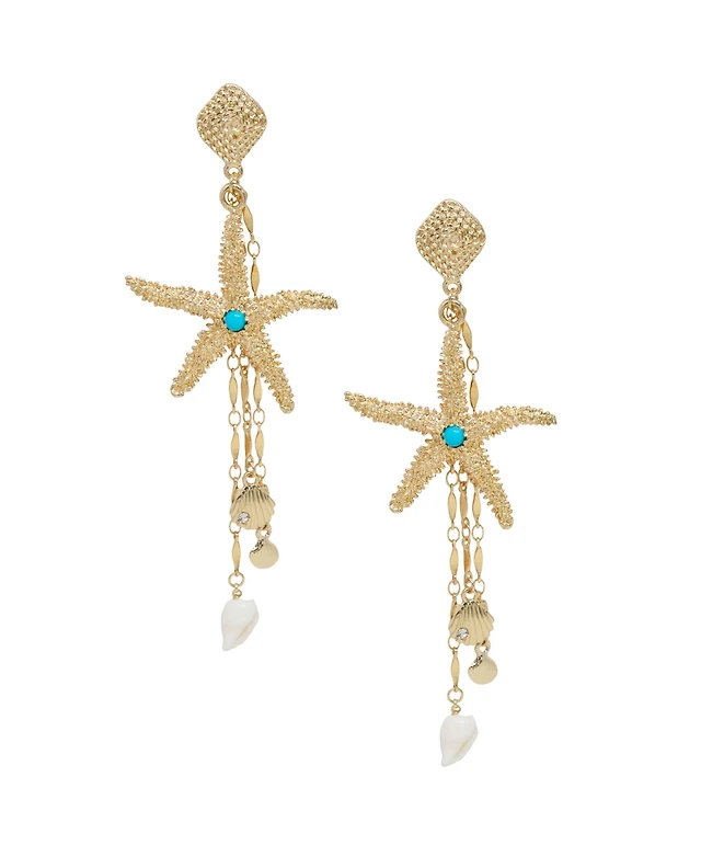 FULL TILT 9 Pack Beach Shell Starfish Earrings - GOLD