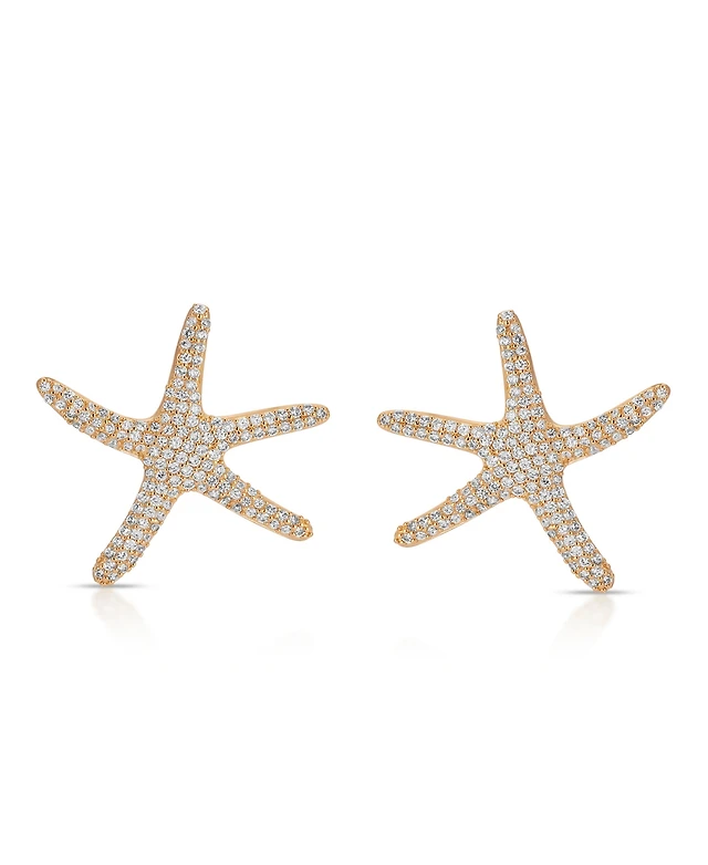 Bowood Lane 12k Gold Plated Cubic Zirconia Stud and Starfish Charm Earrings