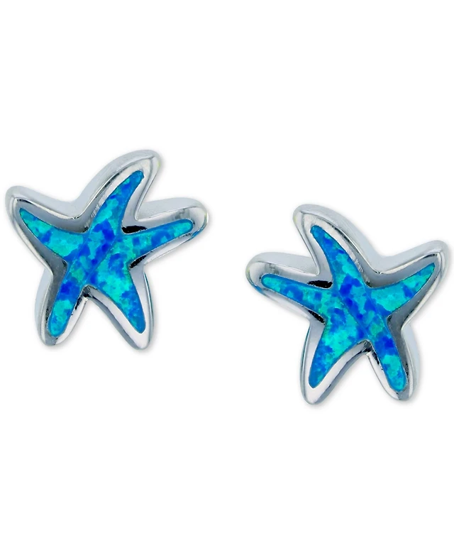 Lab-Grown Blue Opal & Mother-of-Pearl Inlay Starfish Drop Earrings in Sterling Silver
