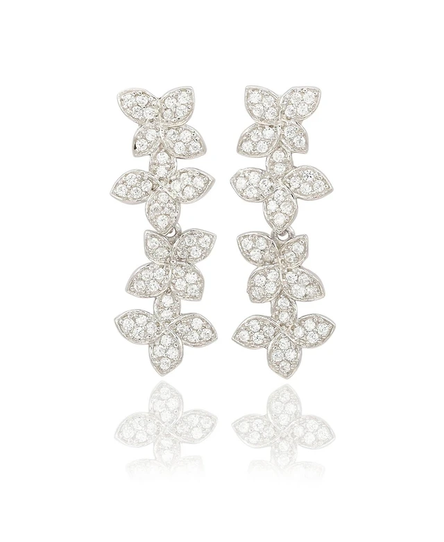 Solid Sterling Silver CZ Round and Flower Chain Stud