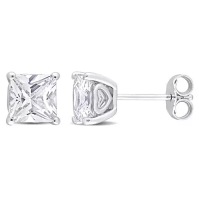 Lab Created 2.6 CT TGW Square Created White Sapphire Earrings in Sterling Silver