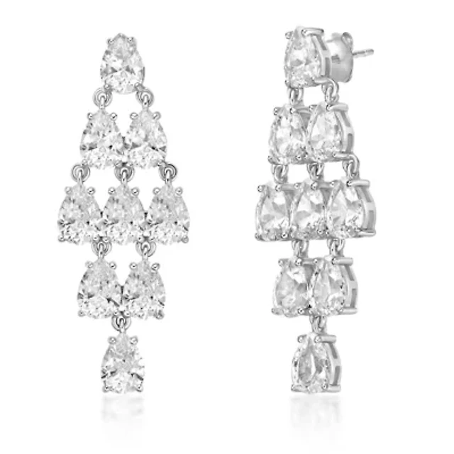 Bling Jewelry Classic Jewelry Fashion Statement Triple Round Pave Cz Halo Long Linear Pear Shape Dangle Teardrop Chandelier Earrings Yellow Gold Silve