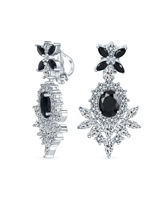 14K White Gold CZ Flower Dangle Stud - 18G 5/16"