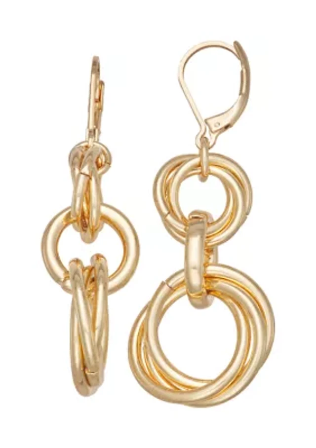 Gold & Blue Acrylic Disc & Circle Drop Earrings