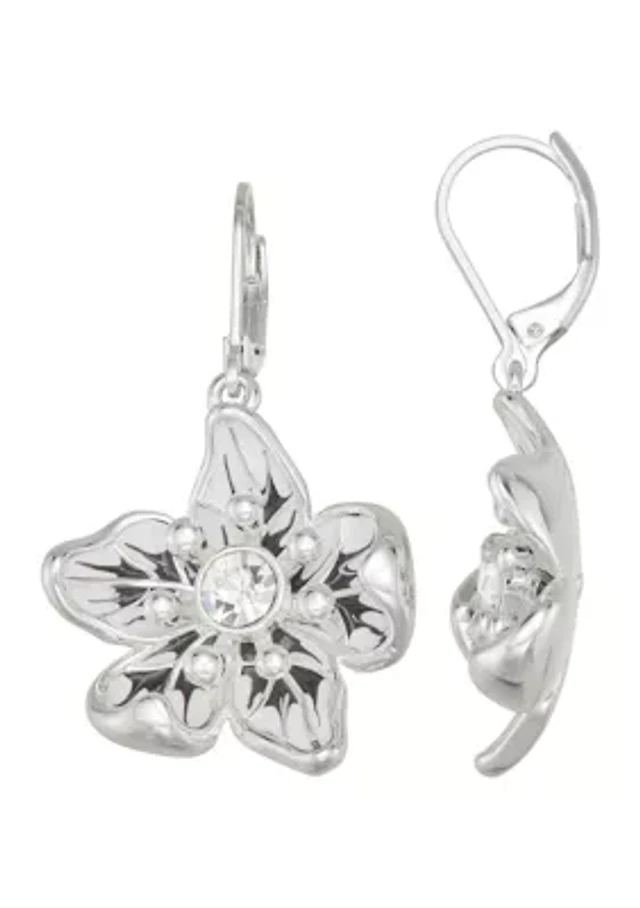 Silver Flower Drop Earrings