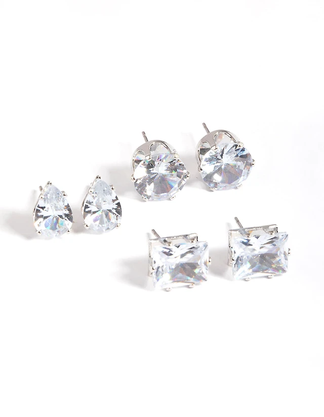 Silver Statement Stud Earrings Pack