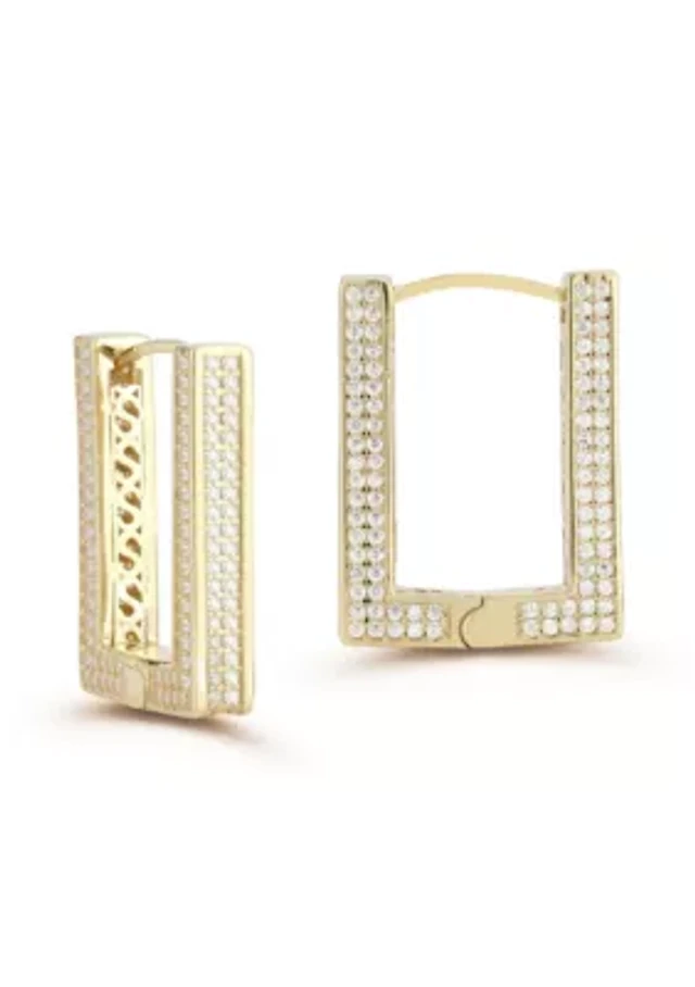 Cubic Zirconia Cross Huggie Hoop Earrings in Sterling Silver