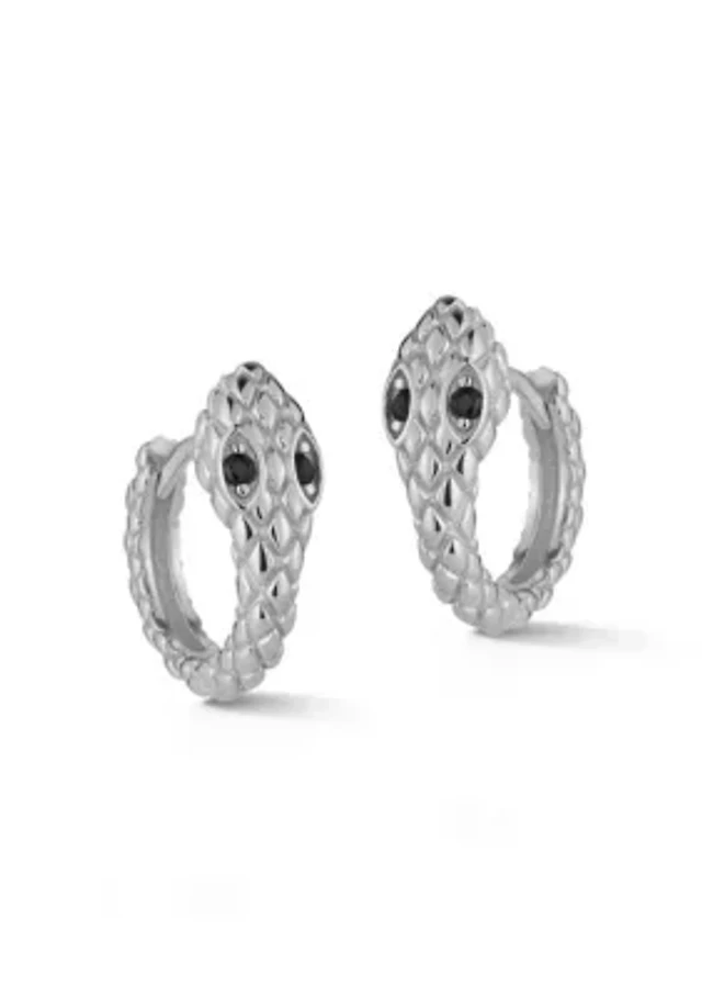 Cubic Zirconia Station Huggie Hoop Earrings in Sterling Silver