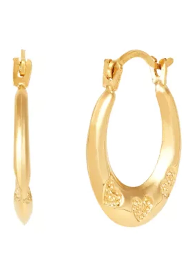 3 Heart Pattern Hoop Earrings in 14K Yellow Gold